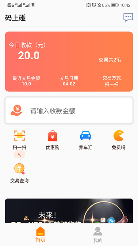 码上碰是一款服务于线下用户的app,软件用于用户便捷收款和交易查询等,十分方便,支持多种收款方式,全方位满足用户需求,码上碰,收钱查账一键搞定。感兴趣的朋友快来下载使用吧。