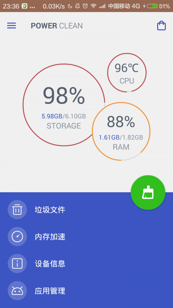 安卓版下载 苹果版下载 大小:1.9M 下载:1783次 强力清理 支 持:Android 4.2以上 分 类:安全防护 大 小:1.9M 版 本:v5.8.8 评 分: 开发者:暂无 下载量:1783次 发 布:2021-07-21 13:08 手机扫码免费下载 #强力清理截图 #强力清理简介 强力清理app是一款手机清理工具,强力清理app为用户提供强大的手机清理功能,将用户手机的垃圾、缓存等无用数据统统清理干净,提升用户手机运行速度。功能介绍 强力清理app是一款轻巧、快速、功能强大的安卓清理应用,能帮助用护轻鬆释放存储空间,解决系统卡顿,禁止不需要的应用程式反复重啓,让手机时刻运行在良好状态。 您的安卓设备是否运行缓慢?时常出现「空间不足」的警讯?通通交给强力清理来解决吧!
