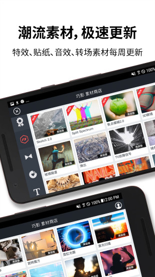 素材商店提供数千种音乐、模板、字体、贴纸、转场,以及更多增强视频的功能素材,每周实时更新